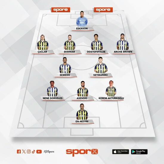 Fenerbahçe: Ederson, Çağlar, Skriniar, Oosterwolde, Brown, Semedo, Szymanski, Nene, Asensio, Kerem, En-Nesyri.