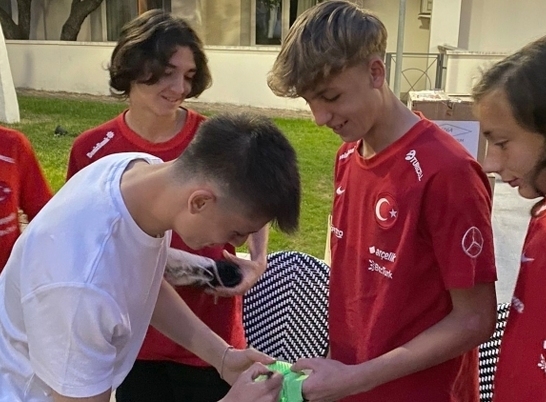 14 yaş altı milli takım futbolcularına birer krampon hediye eden Arda, daha sonra imza dağıttı ve günün anısına ekibin teknik heyet ve oyuncularıyla fotoğraf çektirdi.