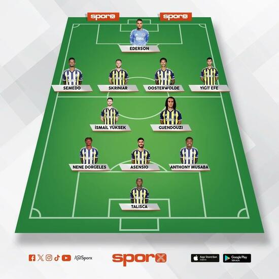 Fenerbahçe: Ederson, Yiğit Efe, Skriniar, Oosterwolde, Semedo, Guendouzi, İsmail, Musaba, Asensio, Nene, Talisca.