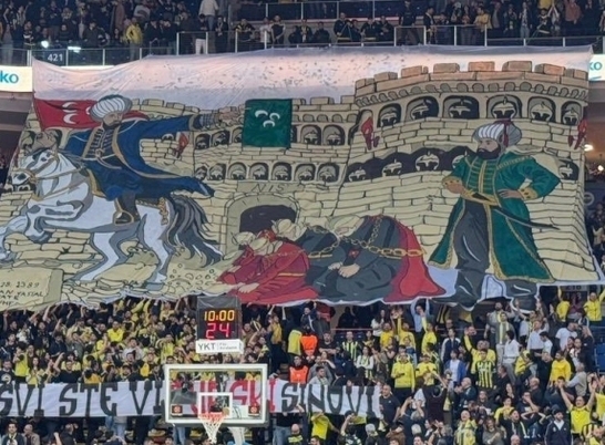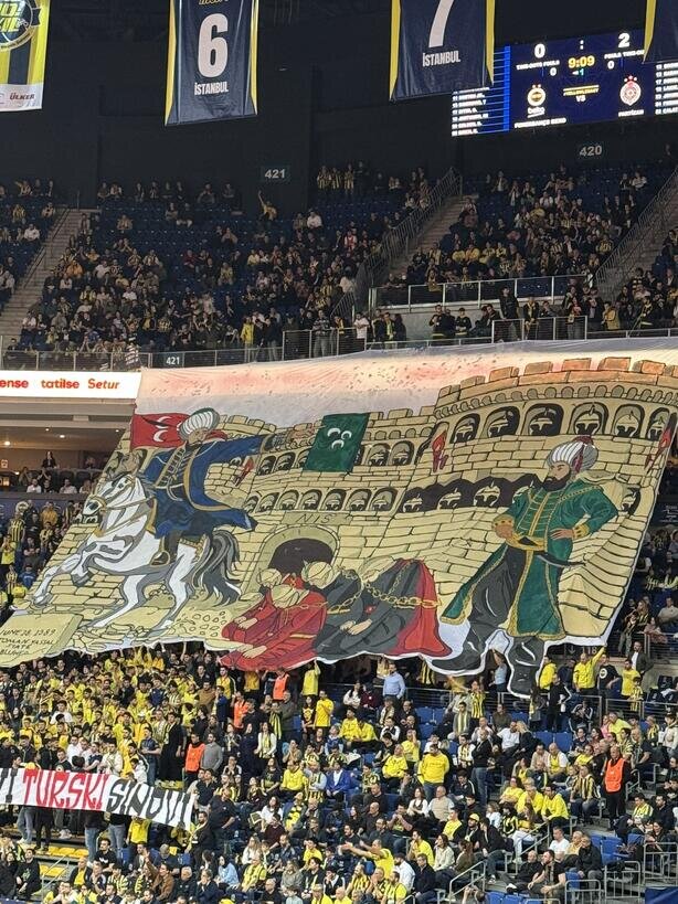 EuroLague'de Fenerbahçe Beko'nun Partizan'ı ağırladığı maçta sarı-lacivertli taraftarlar, Sırbistan'daki karşılaşmada açılan pankarta cevap verdi.