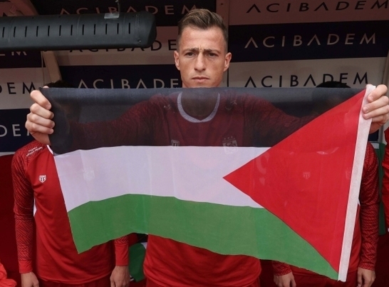 Hakan Arslan maça Filistin bayrağı ile çıktı