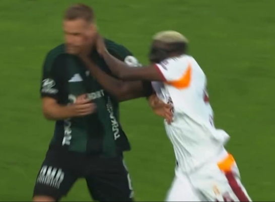 Rakiplerine sürekli fauller yapan ancak kendisine dokunulduğunda gaddar bir faul yapılmış gibi jestler yapan Osimhen, Kocaelispor stoperi Smolcic'e iki eliyle tokat attı.