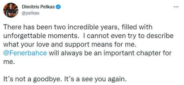 Yunan futbolcu paylaşımında şu ifadelere yer verdi: "Unutulmaz anlarla dolu iki inanılmaz yıl oldu. Sevginizin ve desteğinizin benim için ne anlama geldiğini tarif etmeye bile çalışamam. Fenerbahçe, benim için her zaman önemli bir bölüm olacak. Bu bir veda değil. Tekrar görüşmek üzere."