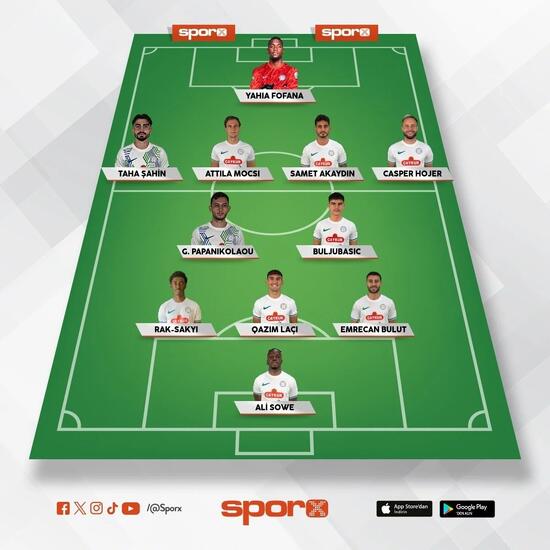 Rizespor: Fofana, Taha, Mocsi, Samet, Hojer, Papanikolaou, Buljubasic, Rak-Sakyi, Laçi, Emrecan, Sowe.