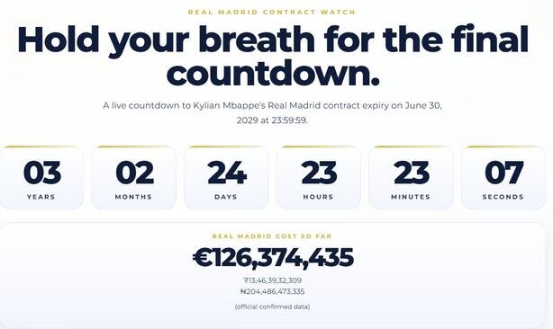 Söz konusu sitede Mbappe'nin Real Madrid ile olan sözleşmesinin biteceği tarihe doğru işleyen bir sayaç yer alırken, yıldız futbolcunun kazancının da anlık olarak güncellenmesi dikkat çekti.