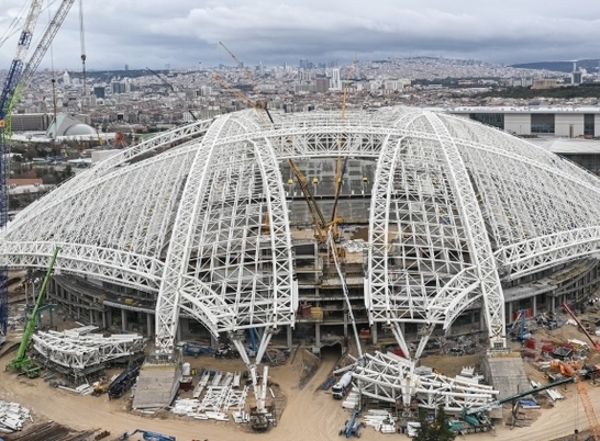 Stadının bazı özellikleriyle dünya çapında öncü nitelikler taşıdığını anlatan Akar, "51 bin 50 seyirci kapasitesiyle Türkiye'nin 3. büyük stadı olacak. Üzerinde 17 bin ton çelik imalatımız var. Bu çeliğin en uzun açıklığı 285 metre ve dünyada 'tek parça 3. büyüklükte kiriş açıklığı' olarak yer alıyor. Ayrıca tavanda 60 bin metrekarelik alan membran ile kapatıyoruz. Orta kısımdaki çim saha hariç, tavan tamamen kapalı olacak. Yapıyı adeta bir şemsiye gibi düşünebiliriz." şeklinde konuştu.